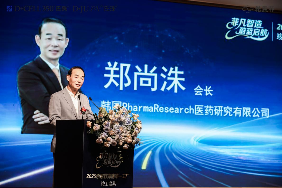 韩国PharmaResearch医药研究有限公司郑尚洙会长到场致辞,他表示:“这座融合了精密制造与中国智造优势的现代化工厂,将成为再生医学成果转化的加速器,未来双方将在肌肤年轻化前沿领域开展更深层次的合作”。